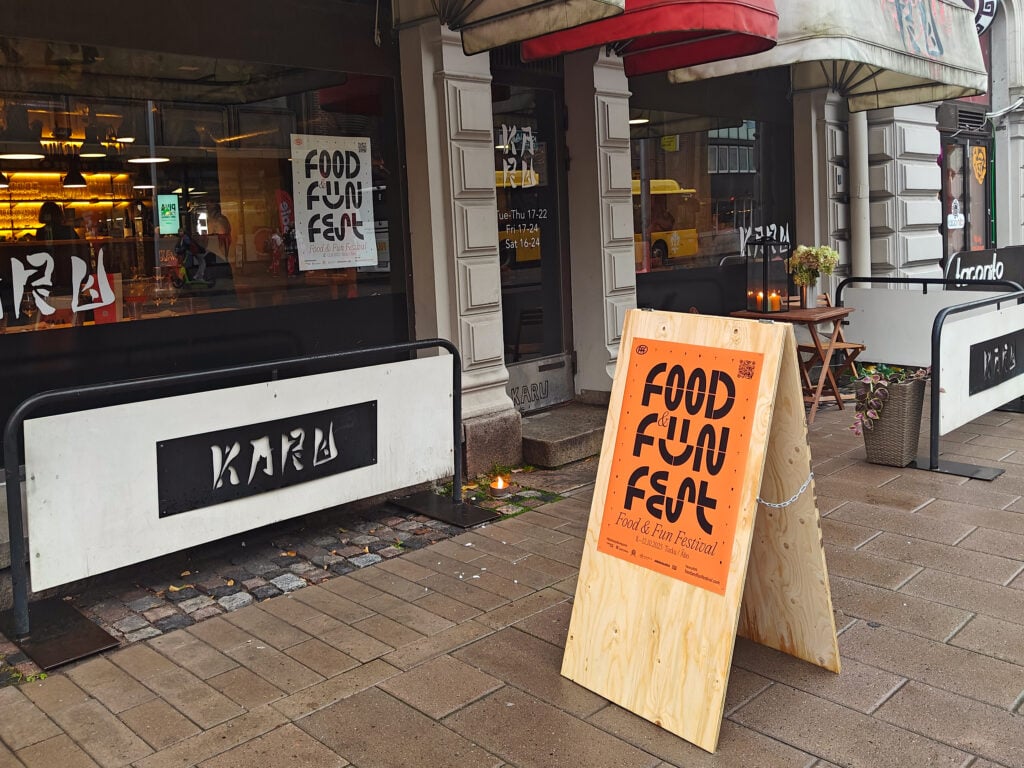 Saavuin kaupunkiin tiistai-iltana ja lähdin lenkille Aurajoen varteen. Useassa kulmassa törmäsin Food & Fun -tapahtuman vanerisiin A-ständeihin ja julisteisiin. Ravintoloiden ikkunoiden läpi näkyi ruokailijoita, kynttilöitä ja pientä kuhinaa. Lokakuu tuntui täydelliseltä ajankohdalta tapahtumalle: vähän hämärää, ruskan värjäämät lehdet vielä puissa – ja juuri oikea hetki istahtaa pöytään ravintolan lämmössä.